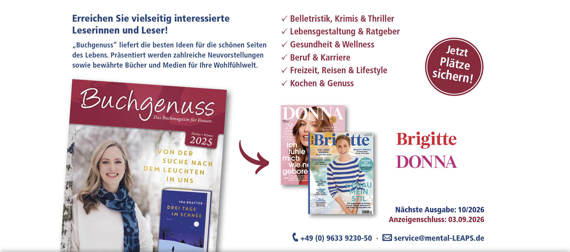Unsere Buchkataloge erreichen genau Ihre gewünschte Zielgruppe, als Beilage in renommierten Zeitschriften.